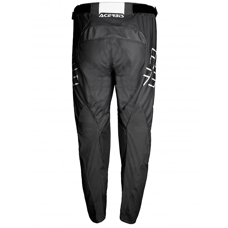 Innovative ACERBIS X-Flex technology: fully elasticized material on waist. Foam padding in the knee area. Can take any type of knee guard thanks to stretch mesh in the calf area. Double waist adjustments with Velcro. Closure with button and fly cam micro adjustment in plastic. Excellent ventilation thanks to mesh in the calf area and above the knee. Weight 700 g. Materials. Shell: 88,00% Polyester; 2,8% Nylon; 2,7% kevlar; 2,7% synthetic leather; 2,3% PU; 1,5% spandex. Lining: 100% Polyester. Outer: High-density 600D Polyester, fully elasticized above the knee; 1200D polyester below the knee. Inner: Kevlar® Armortex® and AX Suede reinforcement inside pants.