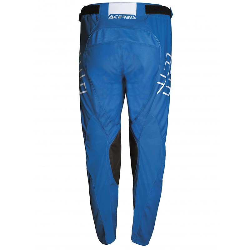 Innovative ACERBIS X-Flex technology: fully elasticized material on waist. Foam padding in the knee area. Can take any type of knee guard thanks to stretch mesh in the calf area. Double waist adjustments with Velcro. Closure with button and fly cam micro adjustment in plastic. Excellent ventilation thanks to mesh in the calf area and above the knee. Weight 700 g. Materials. Shell: 88,00% Polyester; 2,8% Nylon; 2,7% kevlar; 2,7% synthetic leather; 2,3% PU; 1,5% spandex. Lining: 100% Polyester. Outer: High-density 600D Polyester, fully elasticized above the knee; 1200D polyester below the knee. Inner: Kevlarยฎ Armortexยฎ and AX Suede reinforcement inside pants.