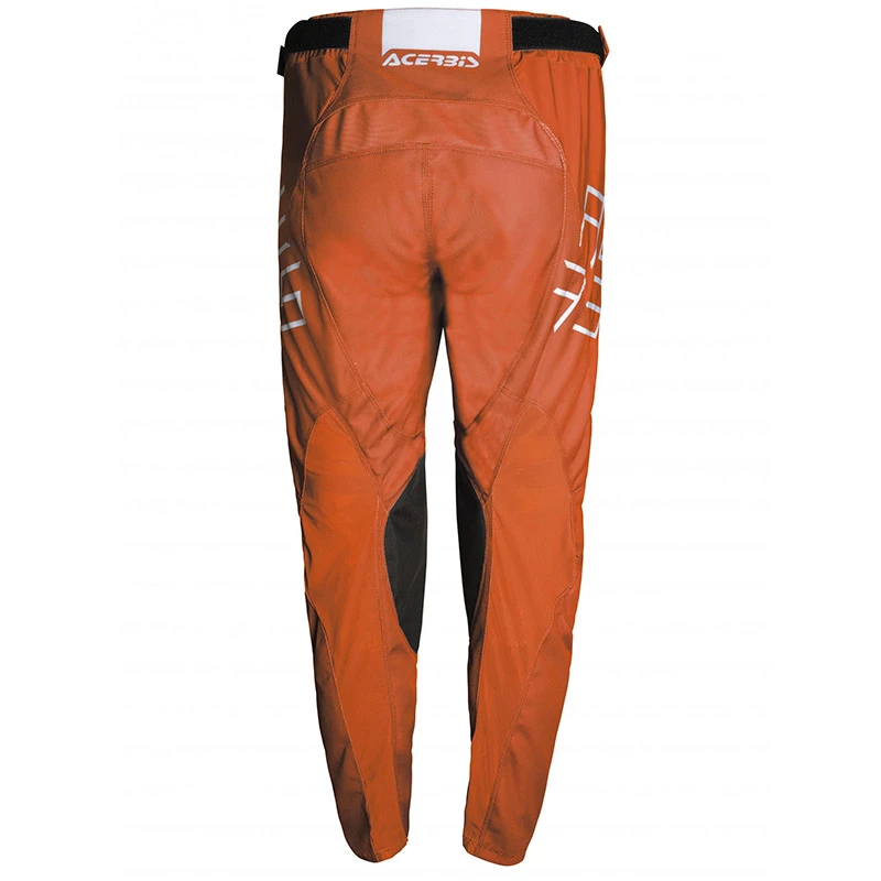 Innovative ACERBIS X-Flex technology: fully elasticized material on waist. Foam padding in the knee area. Can take any type of knee guard thanks to stretch mesh in the calf area. Double waist adjustments with Velcro. Closure with button and fly cam micro adjustment in plastic. Excellent ventilation thanks to mesh in the calf area and above the knee. Weight 700 g. Materials. Shell: 88,00% Polyester; 2,8% Nylon; 2,7% kevlar; 2,7% synthetic leather; 2,3% PU; 1,5% spandex. Lining: 100% Polyester. Outer: High-density 600D Polyester, fully elasticized above the knee; 1200D polyester below the knee. Inner: Kevlar® Armortex® and AX Suede reinforcement inside pants.