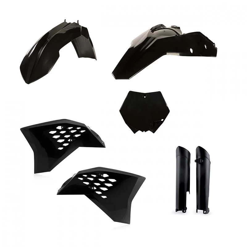 Kit complete with plastics, which includes front fender, radiator spoiler, side number plate, rear fender, filter case cover, pilasters, front number plate.