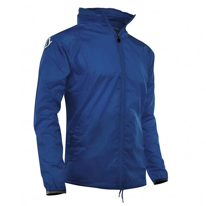 Internal half lining in matching breathable fabric. Sleeve insert in contrasting elasticized fabric. Hood in base fabric inserted in the collar. Cuffs finished off with elastic band. Reversed spiral central zip in matching colour with customised ACERBIS puller. Sail rings for ventilation. Woven regulating cord for hood and bottom in matching colour. High visibility ACERBIS print. HD embroidered logo. Materials: 100% POLYESTER.