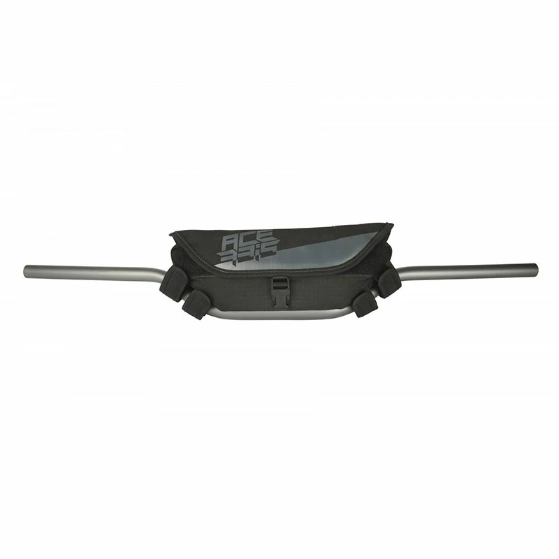 Handlebar bags specially designed for Dual Enduro road and Enduro racing models. Opening with Velcro fastener and plastic buckle. The main compartment is closed by a waterproof and dirt-resistant zip, inside there is a removable tool bag. A pocket for holding credit cards, highway card, etc. A transparent top pocket where it is possible to place a smartphone, which can be used in navigation mode. E-CONNECT access: The Smartphone can stay charged thanks to the power cable passing from the inside to the outside, through a waterproof rubber opening. Reinforcements and anti-vibration padding are provided to ensure stability during all riding conditions (on and off-road). 4 Velcro straps provide stable anchorage to handlebars with and without crossbar. Dimensions ( Length 30cm Height 13cm 8cm). Volume 2.5L. Materials: Polyester 96%. Others 4%.