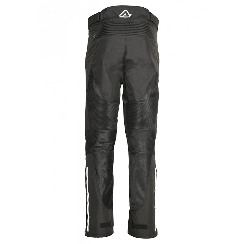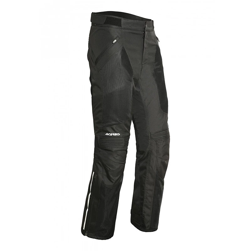 Touring fit. CERTIFIED PANTS EN 17092-4:2020 class A. CERTIFIED KNEE PROTECTORS EN 1621-1: 2012 Type A Level 1. 2 side pockets. Waist regulation. Bottom leg opening with regulation. Refractive ACERBIS logo and applications on the legs. Materials. COMPONENTS: Shell: 100% Polyester. Lining: 100% Polyester. MATERIALS: Outer: Fabric for pants 450D in polyester resistant to tearing and abrasion, water repellent. Leg inserts in heavy mesh resistant to tearing and abrasion. Inner: Inner waistband insert. Lining in mesh. Detachable inner membrane waterproof and breathable. Seams totally taped.